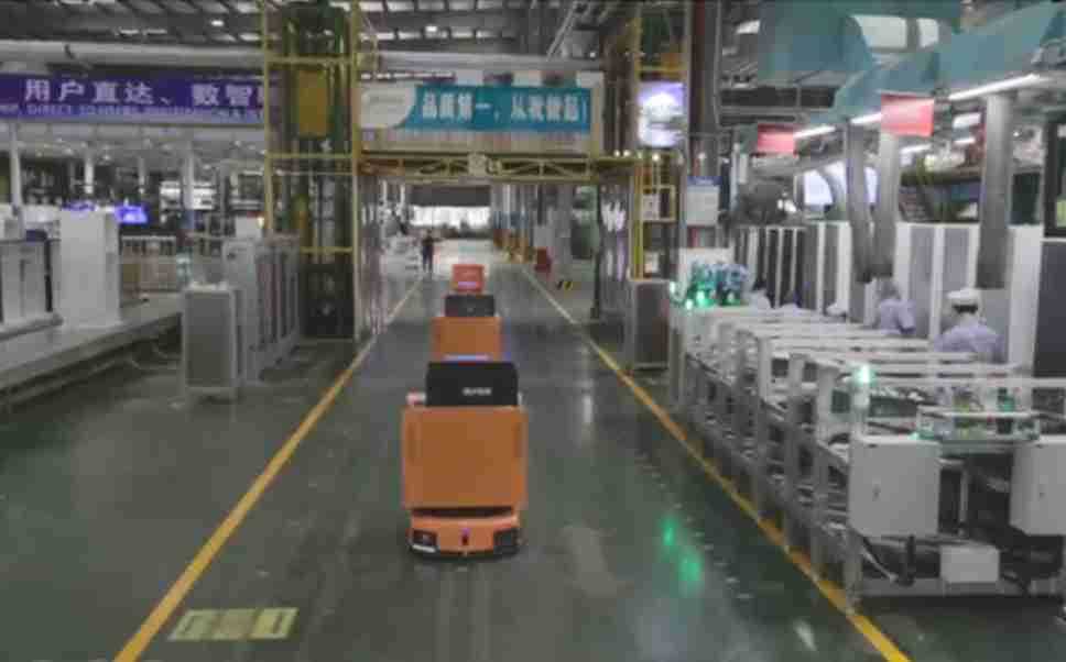为车载冰箱物流配送打造的智能解决方案,,包含产中物流通过潜伏举升AMR搬运至线边,,,,产后成品物流智能仓储,,流程包含产中物流智能齐套入库,,,线边安灯叫料AMR智能配送至线边,,,,成品入库、、、、出库,,,通过无人堆高车机器人,,,,智能仓储管理替代人工作业管理,,,,实现更高存储、、、、更高效率、、、更具柔性化的解决方案。。。。